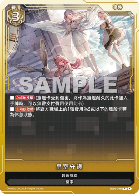 ?牌效果■【?地反?】(旗艦?受到傷害,將作為旗艦耐久的此?加入手牌時,可以無需支付費用使用此?)■【主階段?動】將對方戰場上的1張費用為5或以下的艦船?轉為休息?態。