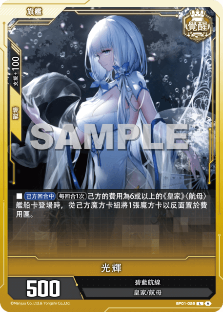 ?牌效果■【己方回合中】【?回合1次】己方的費用為6或以上的《皇家》〈航母〉艦船?登場時,從己方魔方?組將1張魔方?以反面置於費用區。