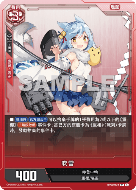?牌效果■【登場時】【己方回合中】可以捨棄手牌的1張費用為2或以下的《重櫻》【主階段?動】事件?:當己方的旗艦?為《重櫻》〈戰列〉?牌時,發動捨棄的事件?。