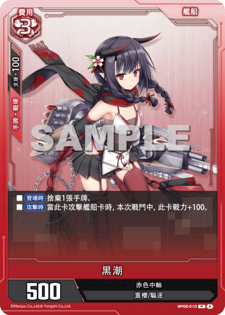 ?牌效果■【登場時】捨棄1張手牌。■【攻?時】當此?攻?艦船?時,本次戰鬥中,此?戰力+100。