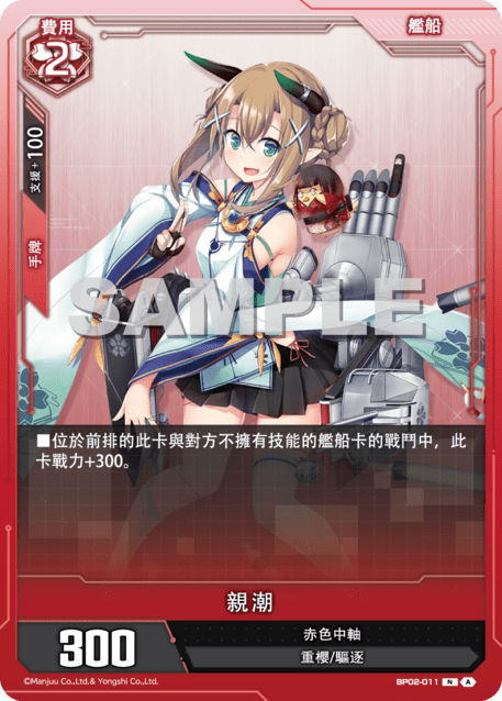 ?牌效果■位於前排的此?與對方不擁有技能的艦船?的戰鬥中,此?戰力+300。