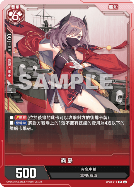 ?牌效果■【遠程】(位於後排的此?可以攻?對方的後排?牌)■【登場時】將對方戰場上的1張不擁有技能的費用為4或以下的艦船??破。