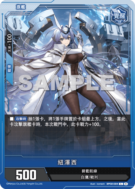 ?牌效果■【攻撃時】抽1張?,將1張手牌置於?組最上方。之後,當此?攻?旗艦?時,本次戰鬥中,此?戰力+100。