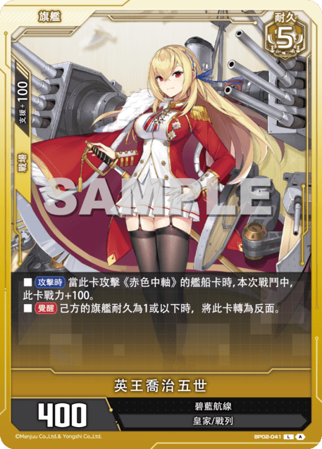 ?牌效果■【攻撃時】當此?攻?《赤色中軸》的艦船?時,本次戰鬥中,此?戰力+100。■【覺醒】己方的旗艦耐久為1或以下時,將此?轉為反面。