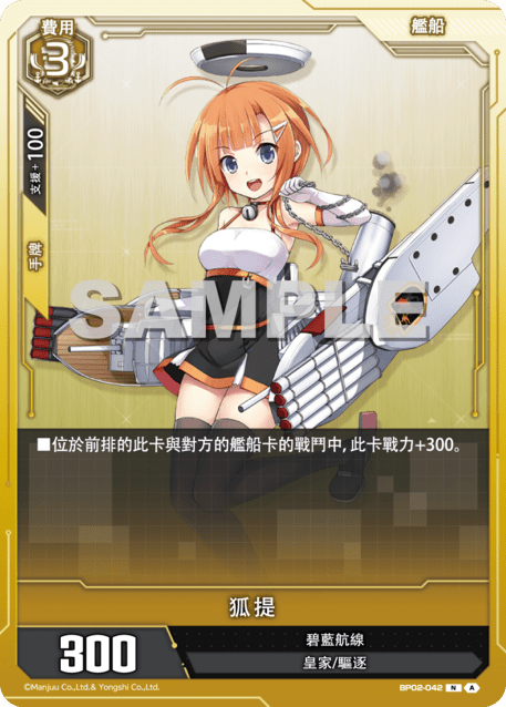 ?牌效果■位於前排的此?與對方的艦船?的戰鬥中,此?戰力+300。