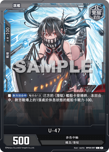 ?牌效果■【對方回合中】【?回合1次】己方的〈潛艇〉艦船?登場時,本回合中,對方戰場上的1張處於休息?態的艦船?戰力-100。