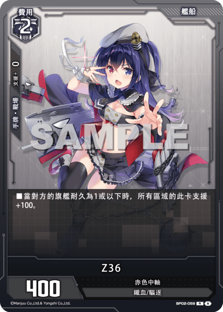 ?牌效果■當對方的旗艦耐久為1或以下時,所有區域的此?支援+100。