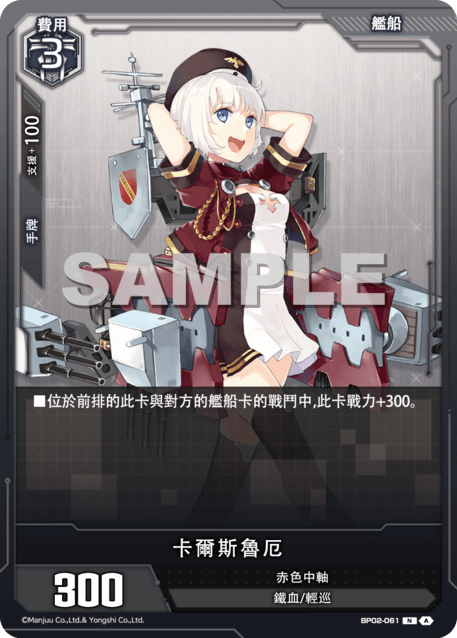 ?牌效果■位於前排的此?與對方的艦船?的戰鬥中,此?戰力+300。
