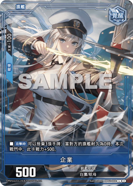?牌效果■【攻?時】可以捨棄3張手牌:當對方的旗艦耐久為0時,本次戰鬥中,此?戰力+500。