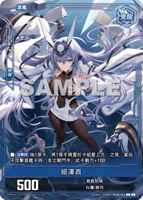 ?牌效果■【攻撃時】抽1張?,將1張手牌置於?組最上方。之後,當此?攻?旗艦?時,本次戰鬥中,此?戰力+100。
