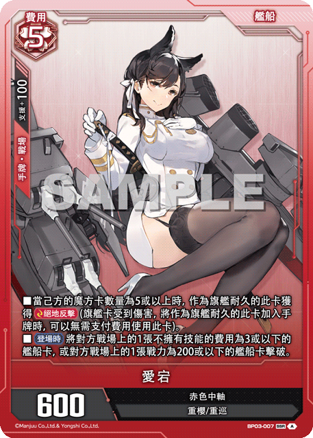 ?牌效果■當己方的魔方?數量為5或以上時,作為旗艦耐久的此?獲得【?地反?】(旗艦?受到傷害,將作為旗艦耐久的此?加入手牌時,可以無需支付費用使用此?)。■【登場時】將對方戰場上的1張不擁有技能的費用為3或以下的艦船?,或對方戰場上的1張戰力為200或以下的艦船??破。